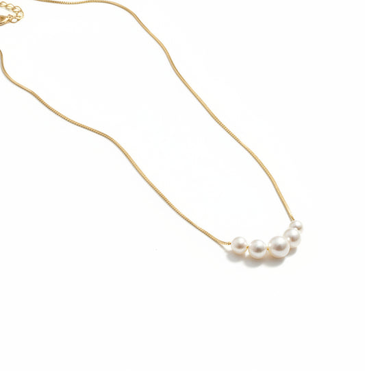 Nostalgic elegance meets modern durability. This piece features a striking arrangement of graduated, luminous pearls...