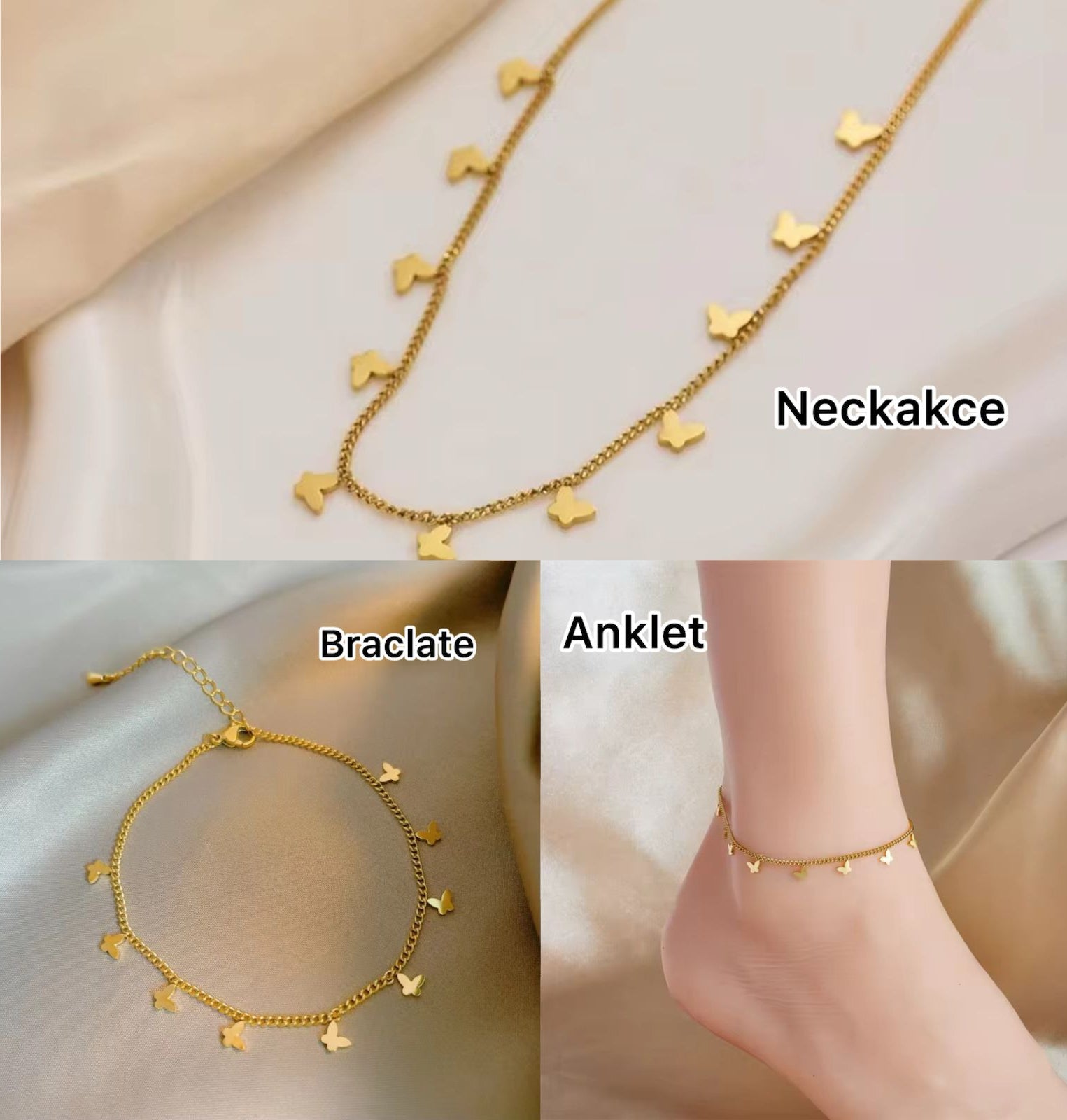Embrace a touch of whimsy and elegance with our beautiful Butterfly Jewelry Set. Crafted from premium stainless steel, this matching collection features delicate butterfly motifs on every piece. This versatile set includes a Necklace, Bracelet, and Anklet, perfect for wearing individually or together to complete a graceful look. The enduring quality ensures these charming pieces remain a favorite in your collection.