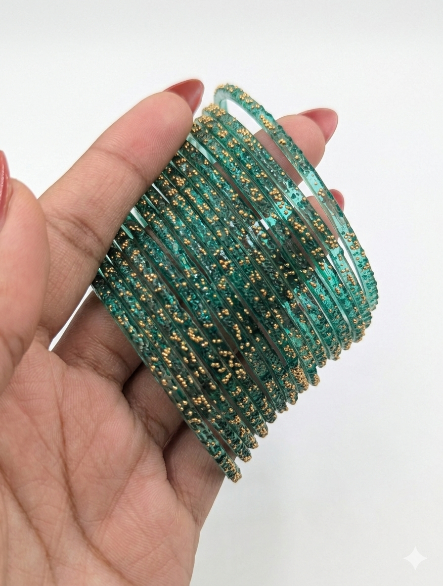 Raindrop Kashmiri Glass Bangles (Buy One Get One Free)