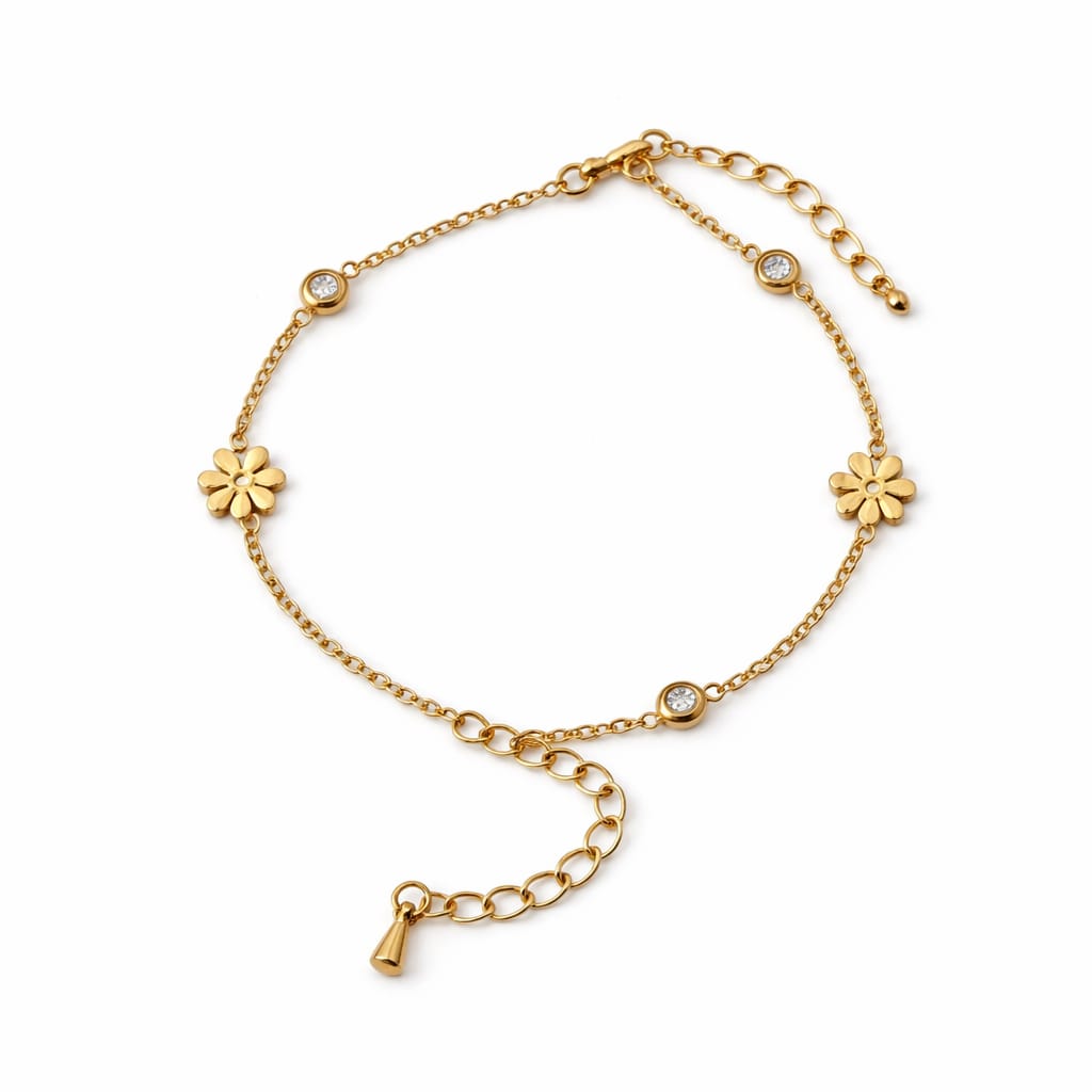 - Design: Flower Bracelet with alternating gold flowers and crystal stations
