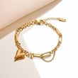 The Golden Heart Link Bracelet is a contemporary and romantic piece, designed to signify eternal affection and modern elegance. This bracelet features a trendy, interlocking chain design, blending bold, elongated links with classic, smaller chain sections. At its heart lies a beautifully polished, voluminous gold-toned heart pendant, offering a soft yet striking focal point. With an adjustable chain extension and a premium K18 mark (as seen on the tag), this bracelet is a stylish, everyday essential that adds a touch of warmth and luxury to any wrist.