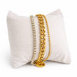 Achieve a bold, layered look instantly with this three-piece set, featuring a tennis bracelet with crystals, a chunky curb chain, and a delicate beaded chain. All pieces are secured together for a comfortable, ready-to-wear style.