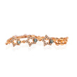 Celebrate your inner radiance with the Star Brust Bracelet. This striking piece features a magnificent, singular starburst (or stylized sunflower) centerpiece that immediately draws the eye. Expertly crafted with a luxurious rose gold-tone finish, the large, openwork motif is brilliantly embellished with clear, sparkling crystals and anchored by a vibrant cluster of deep pink/ruby-hued stones at its core. The bracelet is finished with a unique, flowing chain of polished, elongated links. The Star Brust Bracelet is designed for the woman who makes her own sunshine and is a luxurious statement piece for any sophisticated occasion.