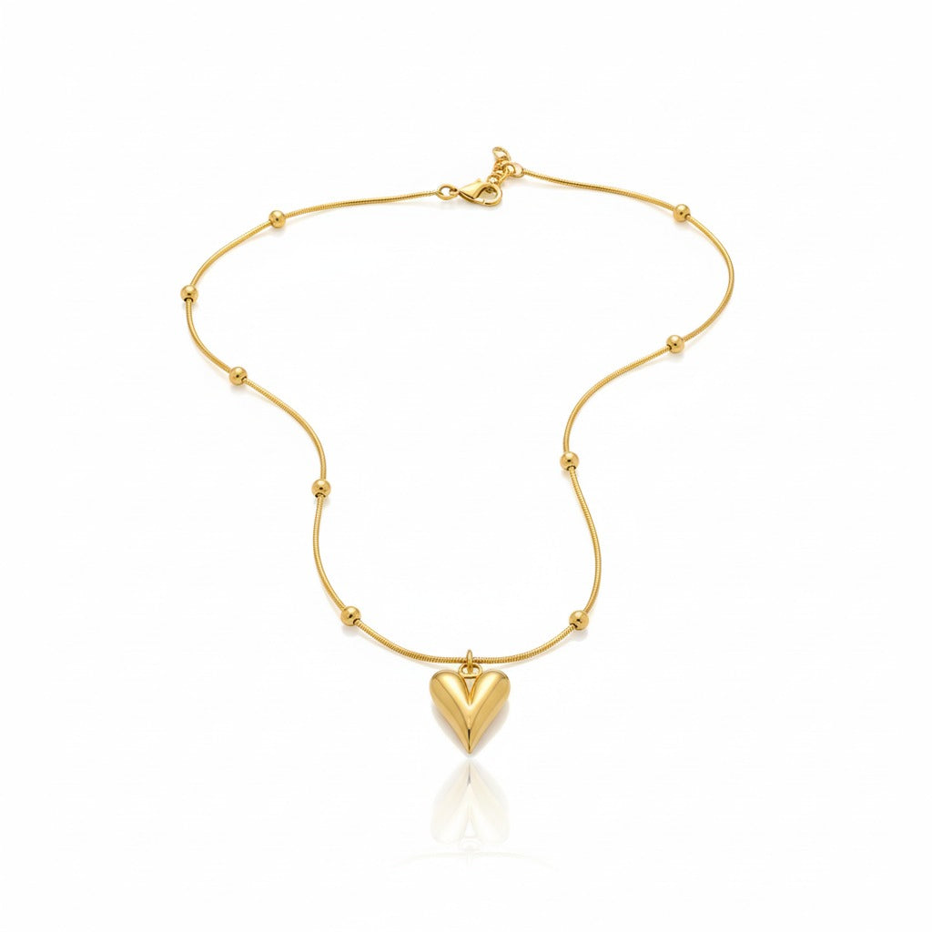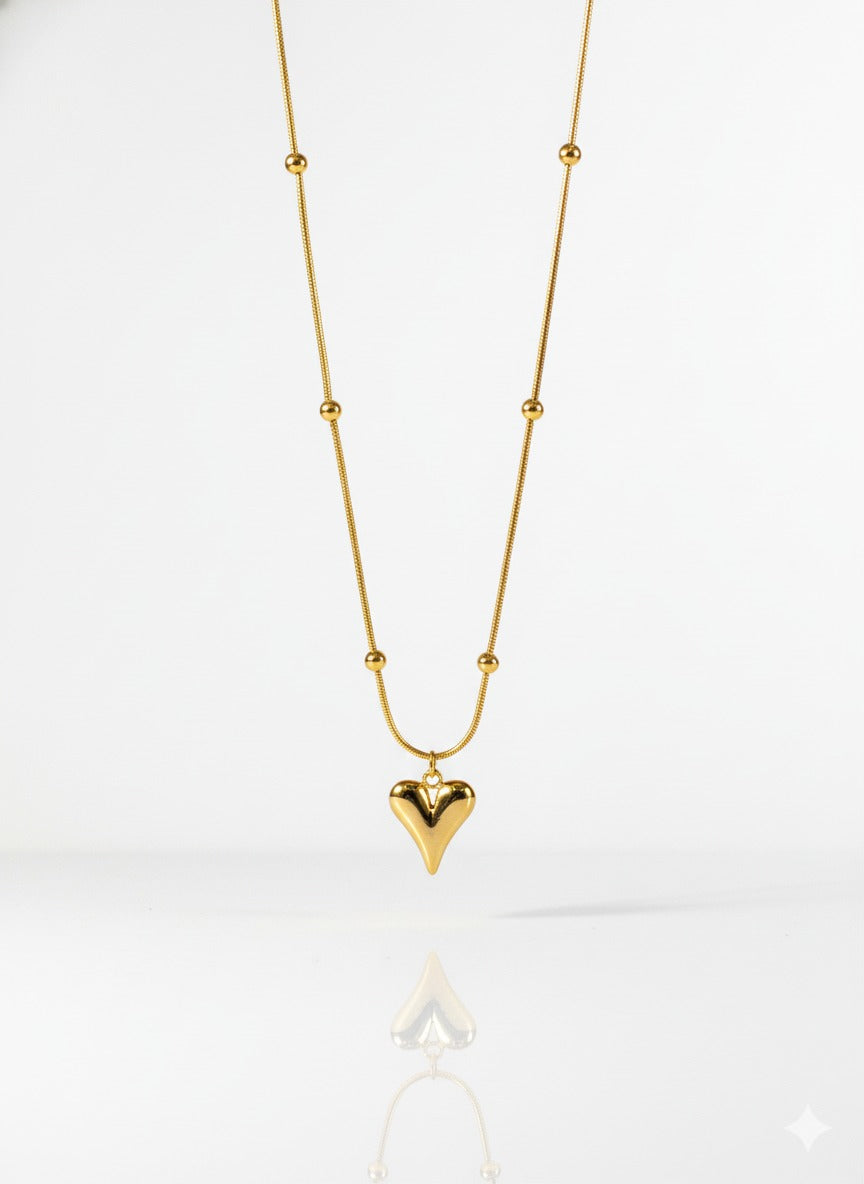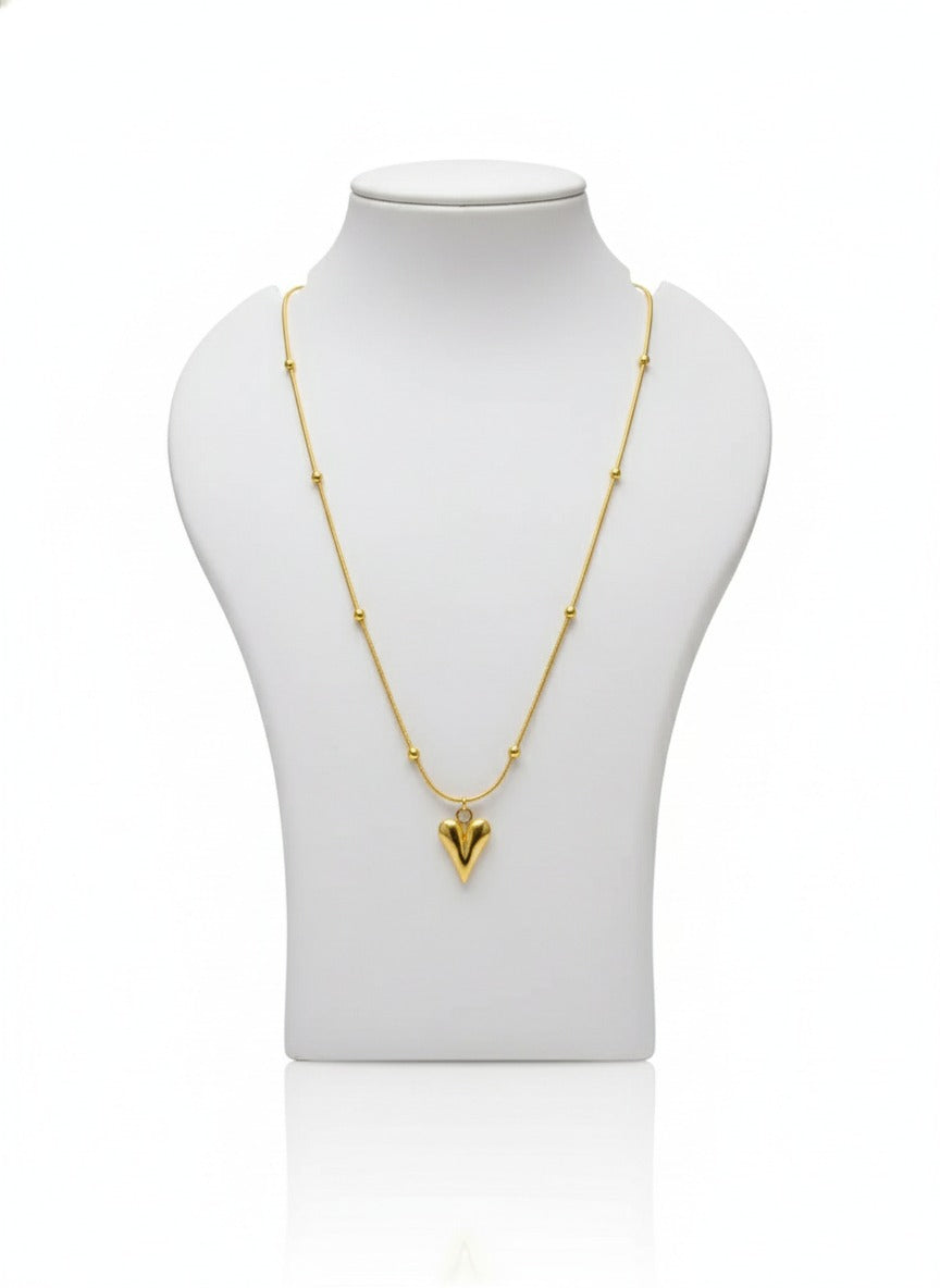 Make a statement of self-love and style with the Bold Heart Charm Necklace. This piece features a beautifully sculpted, chunky heart pendant with a radiant, high-polish finish. The pendant hangs from a substantial and uniquely linked chain, blending classic charm with contemporary design. It’s the perfect necklace for those who love bold, gold accessories that stand out.