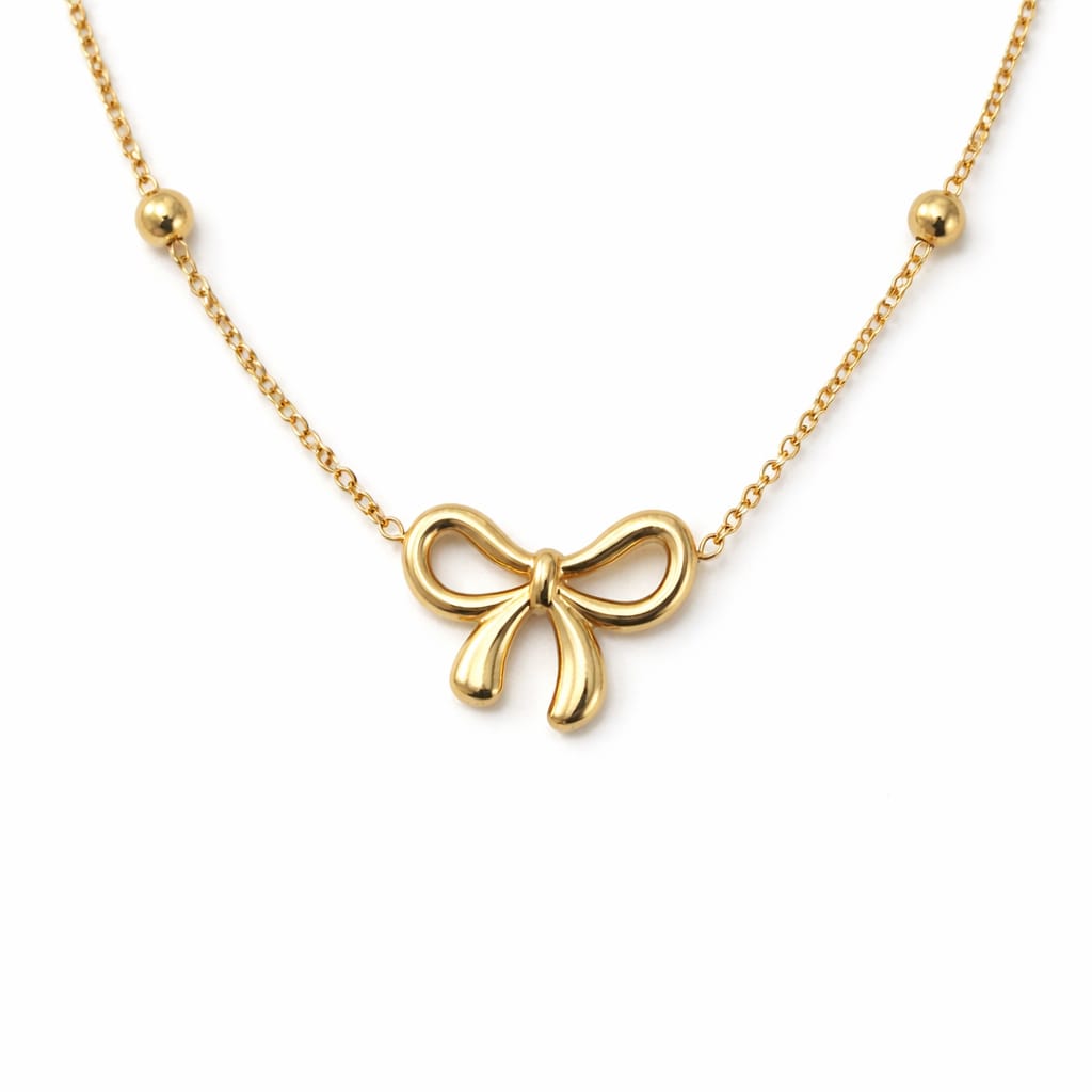 Adorn your neckline with this charming Gold-Tone Bow Necklace. The simple, elegant bow pendant is suspended between delicate beads on a fine chain, making it a perfect piece for layering or standalone wear.