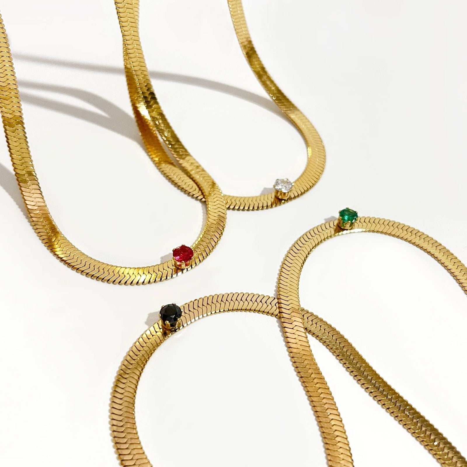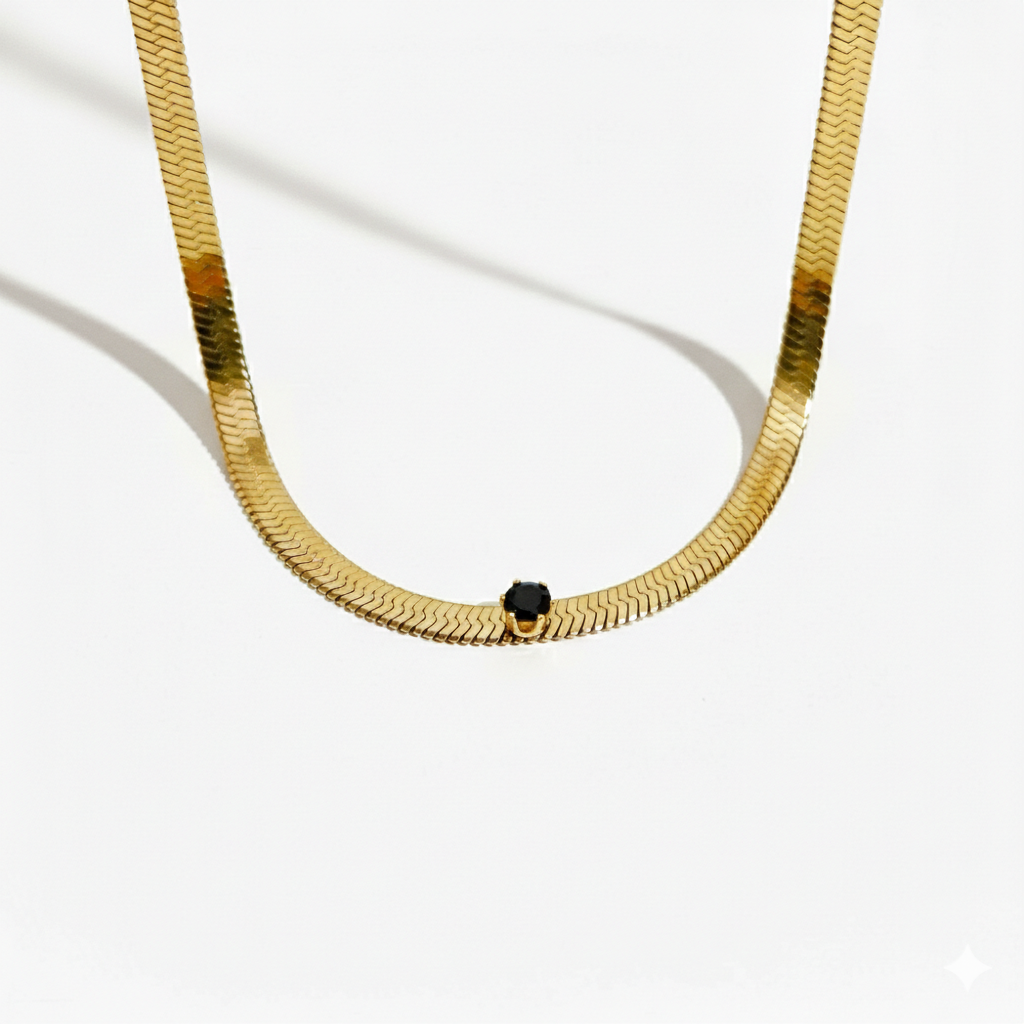 Add a touch of vibrant sophistication to your look with this Gemstone Herringbone Snake Chain Necklace. Combining the sleek, liquid-like movement of a classic gold snake chain with a brilliant singular gemstone, this piece is the ultimate statement in modern luxury. Whether worn alone for a minimalist pop of color or layered for a bold look, it's a versatile staple for any jewelry lover.