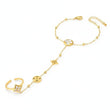 Unique Hand Chain Design: A distinctive piece that connects a bracelet and an adjustable ring with a delicate, beaded chain.