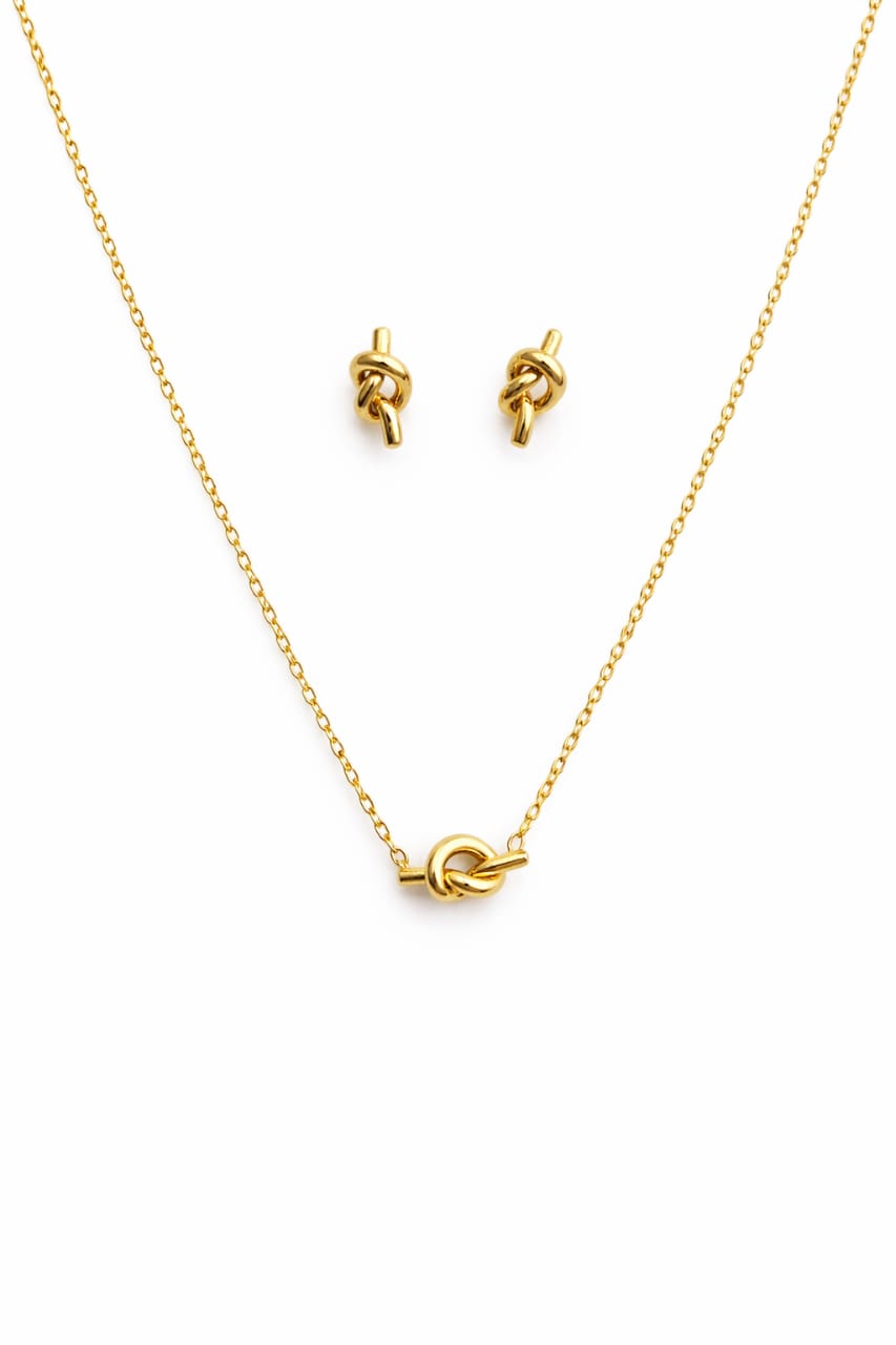 A perfect matching gift set featuring a necklace, bracelet, and pair of stud earrings, all adorned with the timeless love knot design. Made from high-quality stainless steel, this set offers superior durability and style for daily wear.
