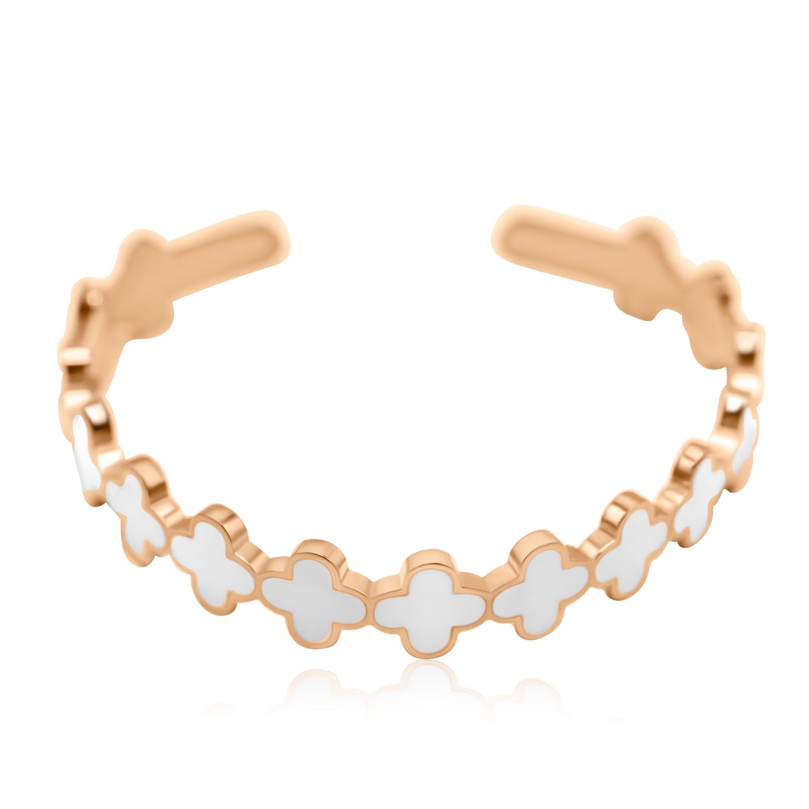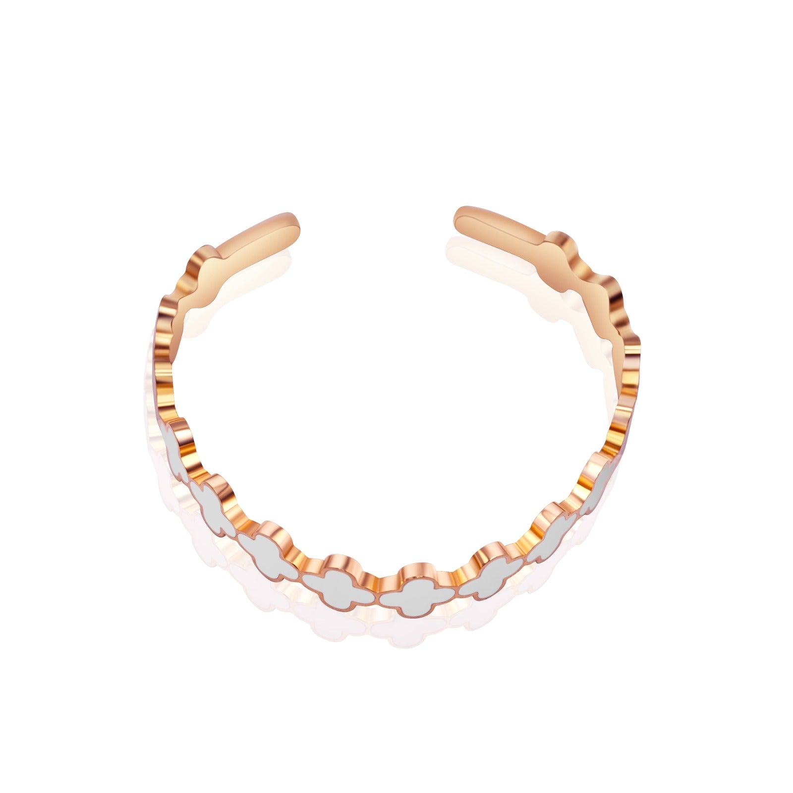 Add a touch of elegance and modern charm to your jewelry collection with the Clover Charm Cuff Bracelet. Designed with a series of smooth white enamel clover motifs set in a luxurious gold-tone finish, this cuff blends simplicity with sophistication. Its open adjustable design ensures a comfortable fit, making it perfect for everyday wear or styling with other accessories. Delicate, stylish, and versatile—this piece is a must-have for any jewelry lover.