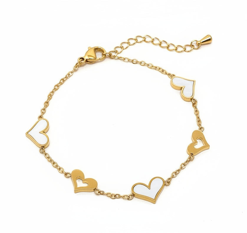 A symbol of romance and timeless charm. This Vintage Heart Bracelet features a delicate arrangement of heart motifs, blending a soft aesthetic with the enduring strength of high-quality craftsmanship.