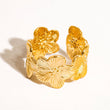 Bring a touch of perpetual spring to your look with this exquisite Gold-Tone Floral Band Ring. This wide open-cuff ring features a continuous, intricate design of overlapping, sculpted flowers, reminiscent of delicate plumeria or hibiscus blossoms. The petals are beautifully detailed with fine lines, enhancing the naturalistic texture. Finished in a radiant, high-polish gold tone, this ring offers a bold yet feminine statement, perfect for lovers of nature-inspired jewelry.